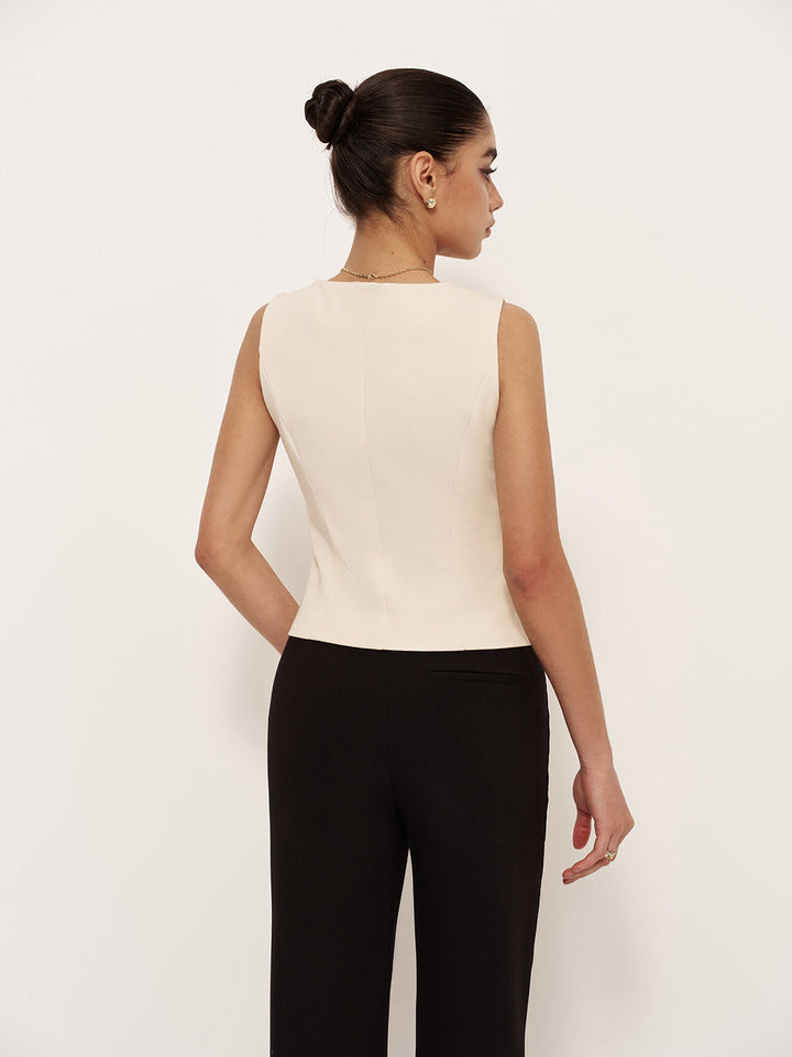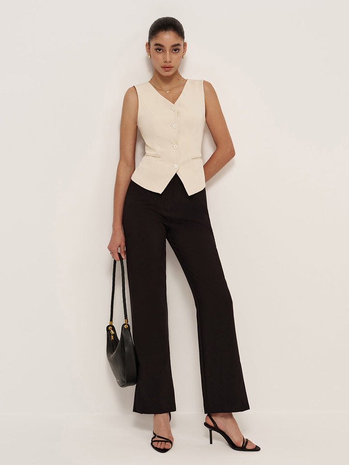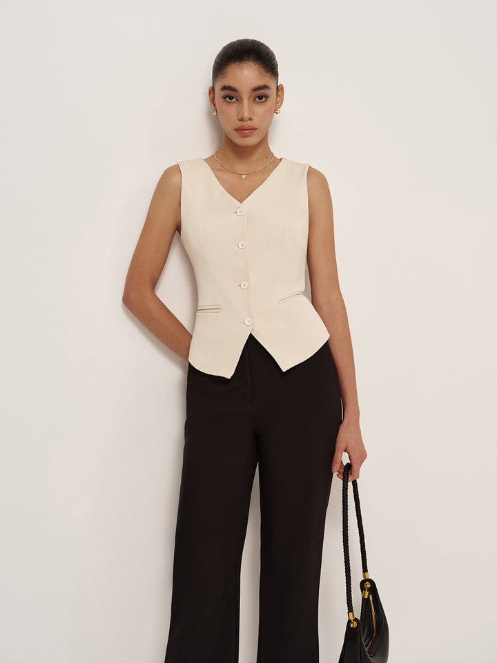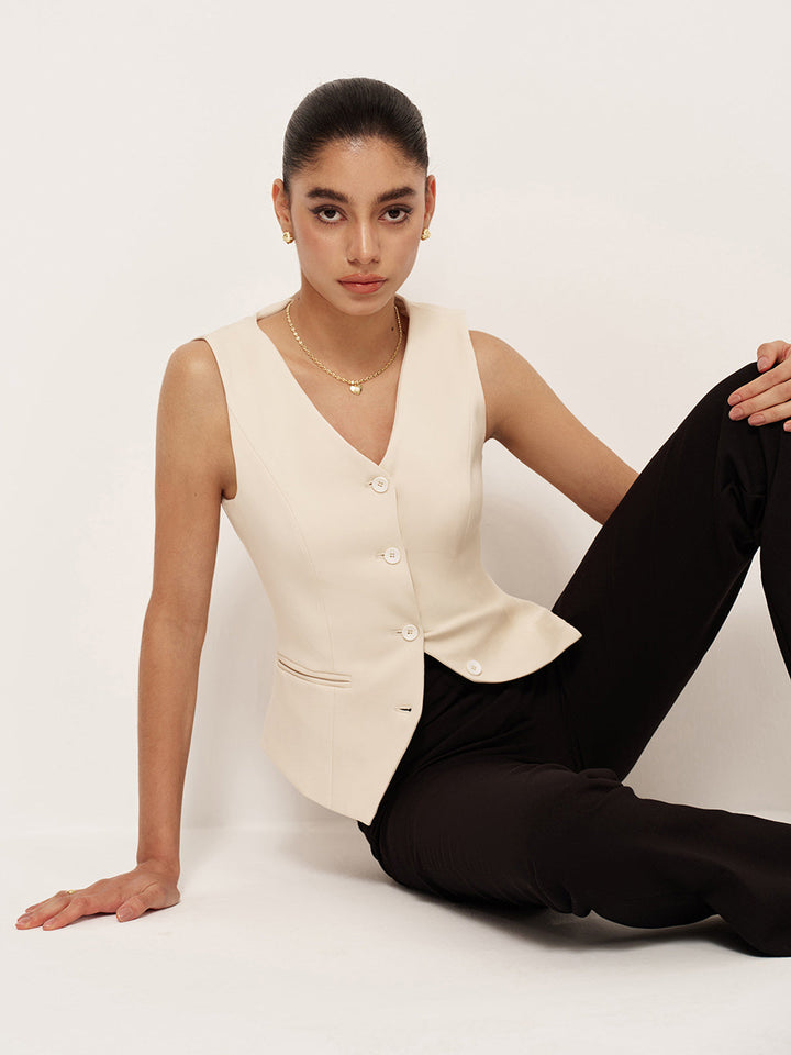 V Yaka Düğmeli Cepli Yelek