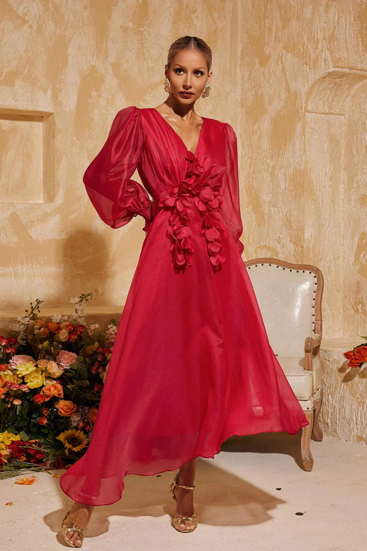 V Yaka Püsküllü Midi Elbise