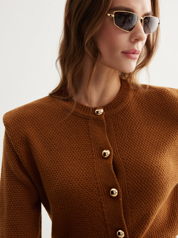Bu şık ve rahat kıyafet, %75 Akrilik, %15 Yün ve %10 Naylon karışımından üretilmiştir. Düğmeli tasarımı ile hem günlük hem de özel günlerde tercih edebileceğiniz zarif bir seçenektir. Orta kalınlıkta dokusu sayesinde her mevsim rahatlıkla giyilebilir.