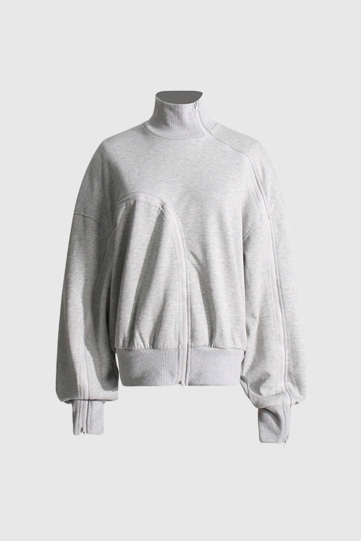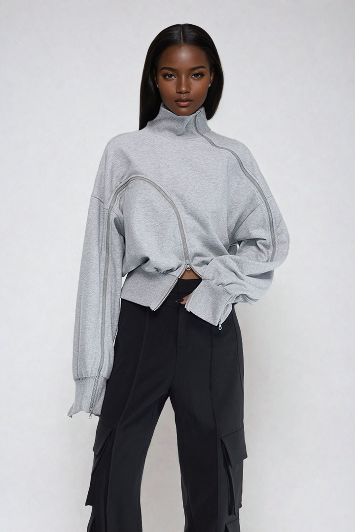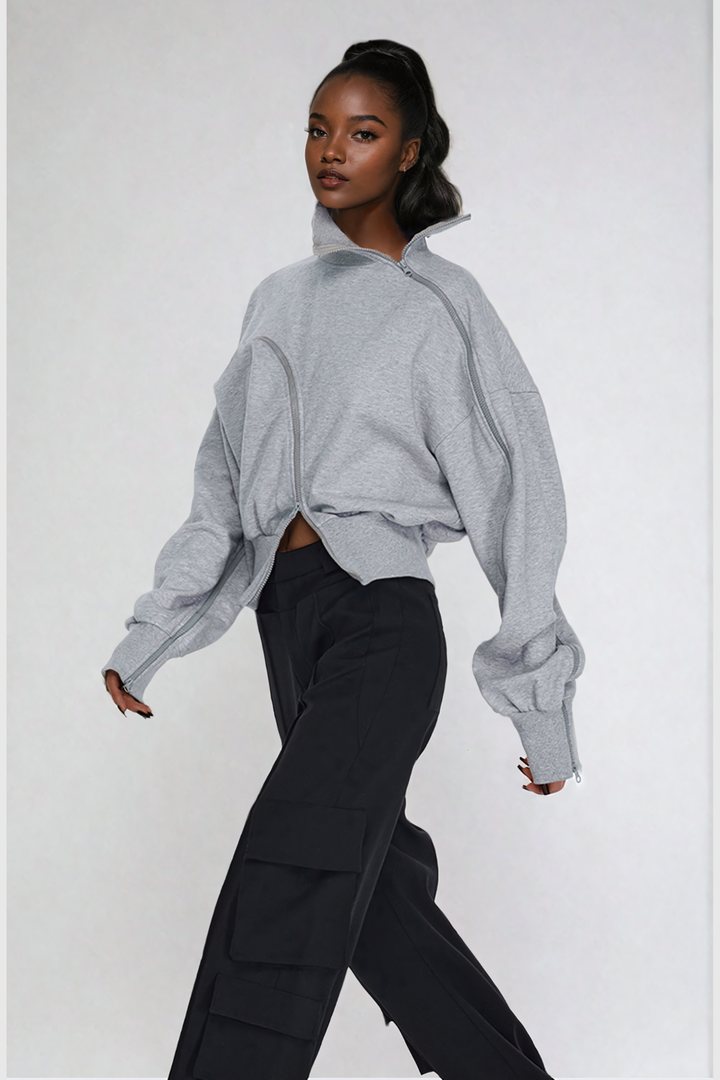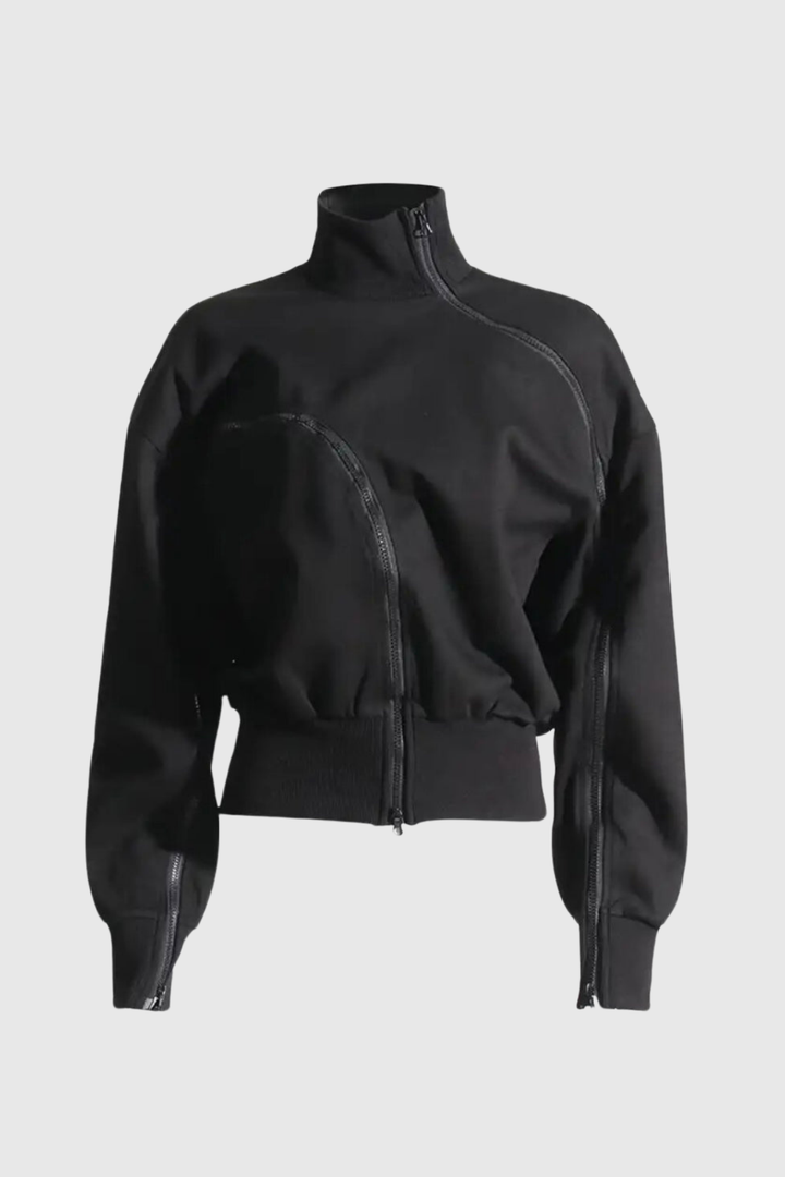 Siyah Asimetrik Fermuar Detaylı Sweat – Modern ve Şık Tasarım