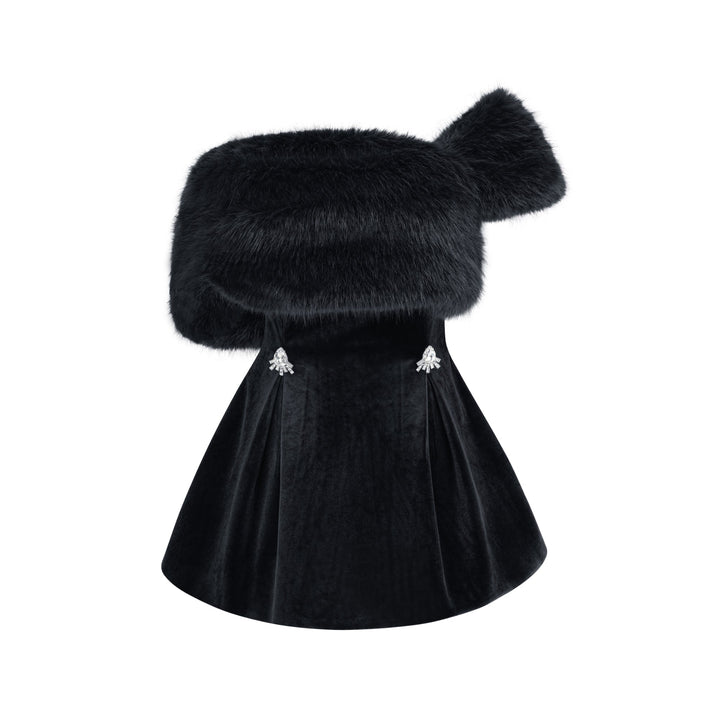 Wivika Straplez Kadife Suni Kürk Mini Elbise