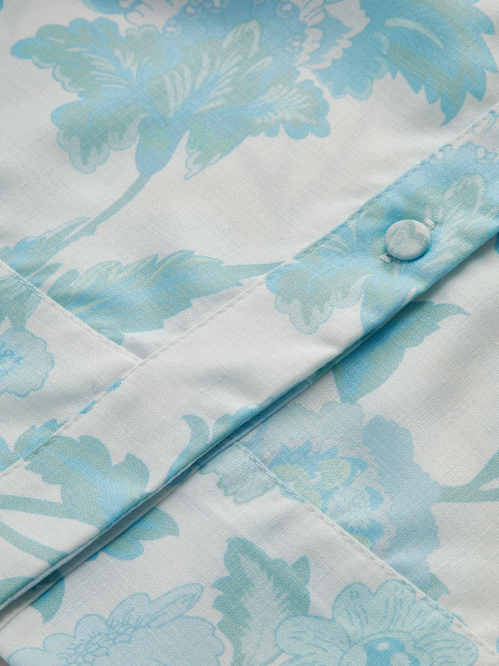 Yaka Çiçek Desenli Kemerli Şort Takımı