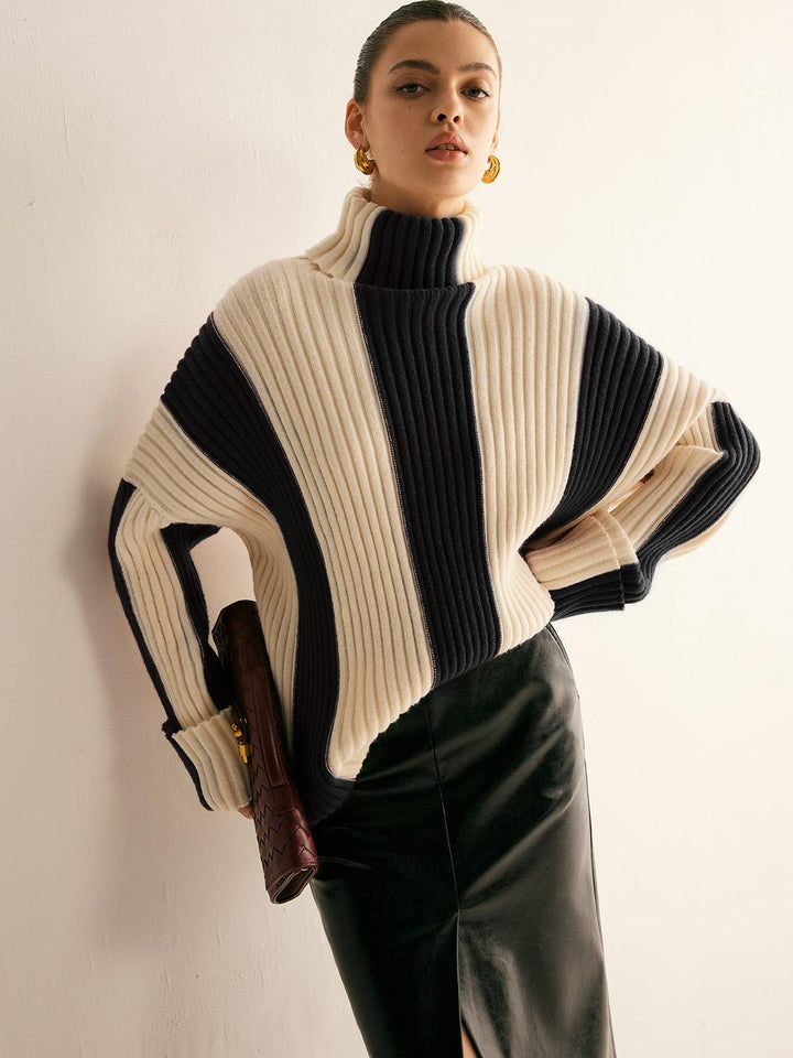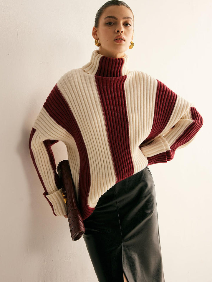 Modern renk bloklu tasarımı ve oversize kesimiyle dikkat çeken bu kazak, hem konfor hem de şıklık sunuyor. Kış kombinlerinizi renklendirmek için mükemmel bir parça!