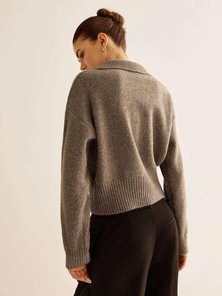Yün Karışımlı Polo Yaka Kazak