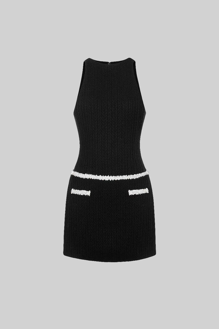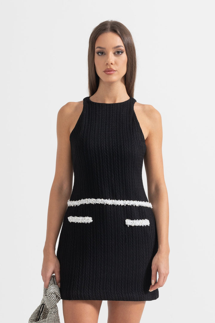 Siyah Şık Kolsuz Dokulu Mini Elbise