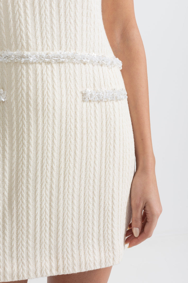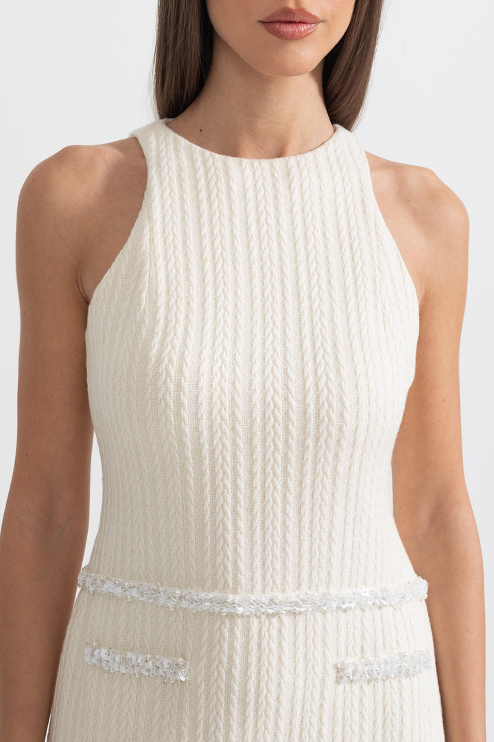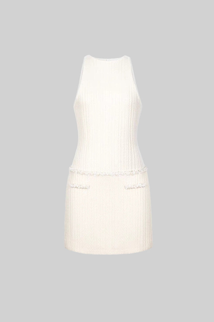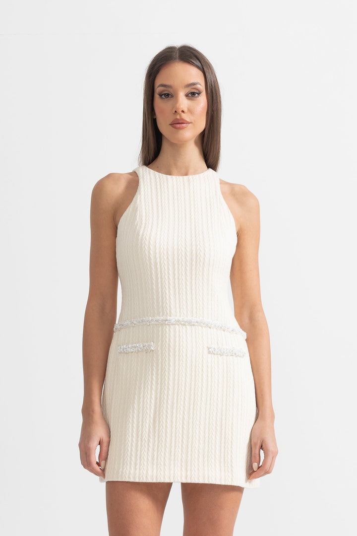 İvoire Şık Kolsuz Dokulu Mini Elbise