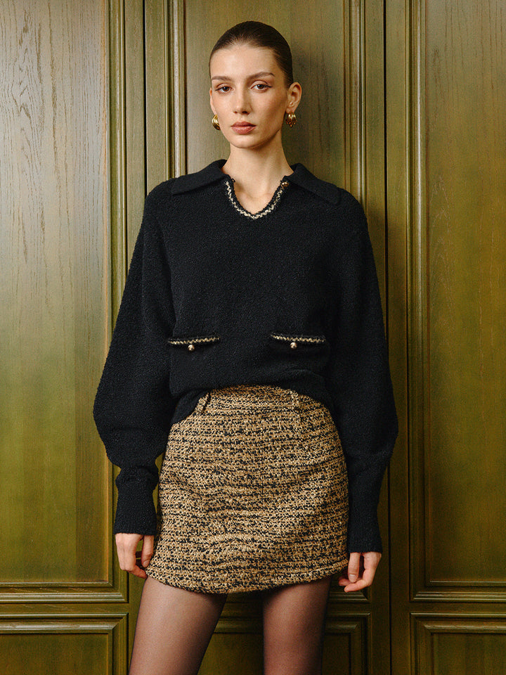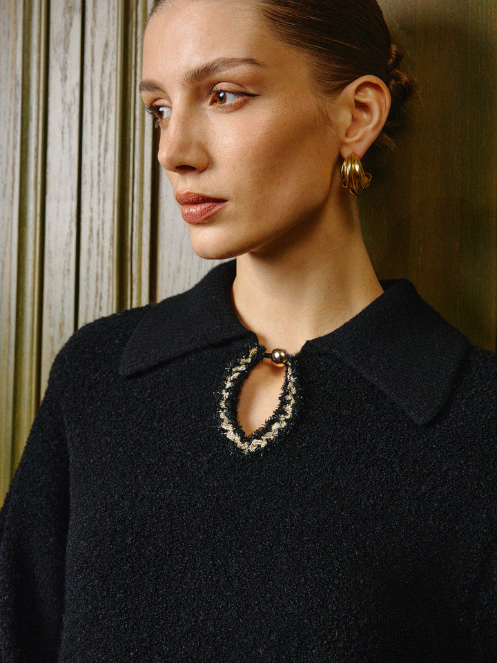 Zarif Kontrast Biye Anahtar Deliği Yaka Polo Kazak