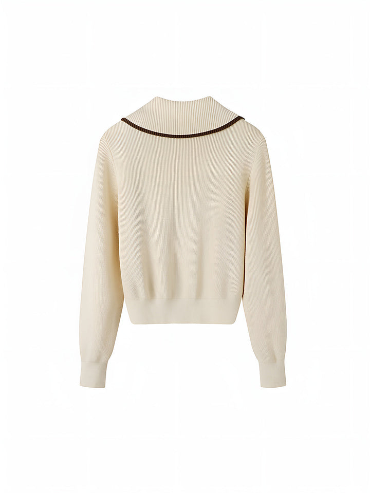 Zarif Kontrast Kesimli Fermuarlı Hırka