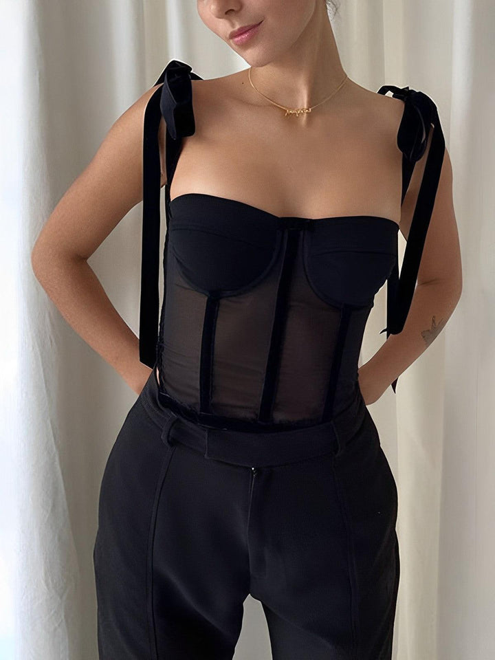Modern tasarımı ve şık detaylarıyla bu siyah askılı korsaj bluz, özel davetlerde ve günlük kombinlerde dikkat çekmek isteyenler için ideal bir seçim. Şeffaf kumaş detayı ve zarif bağcıklarıyla feminen bir hava katıyor. Şıklığı ve konforu bir arada sunan bu parça, gardırobunuzun vazgeçilmezi olacak.