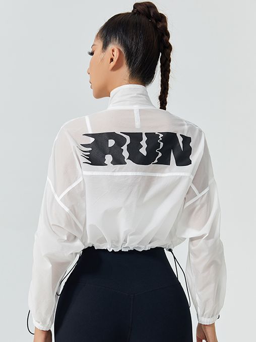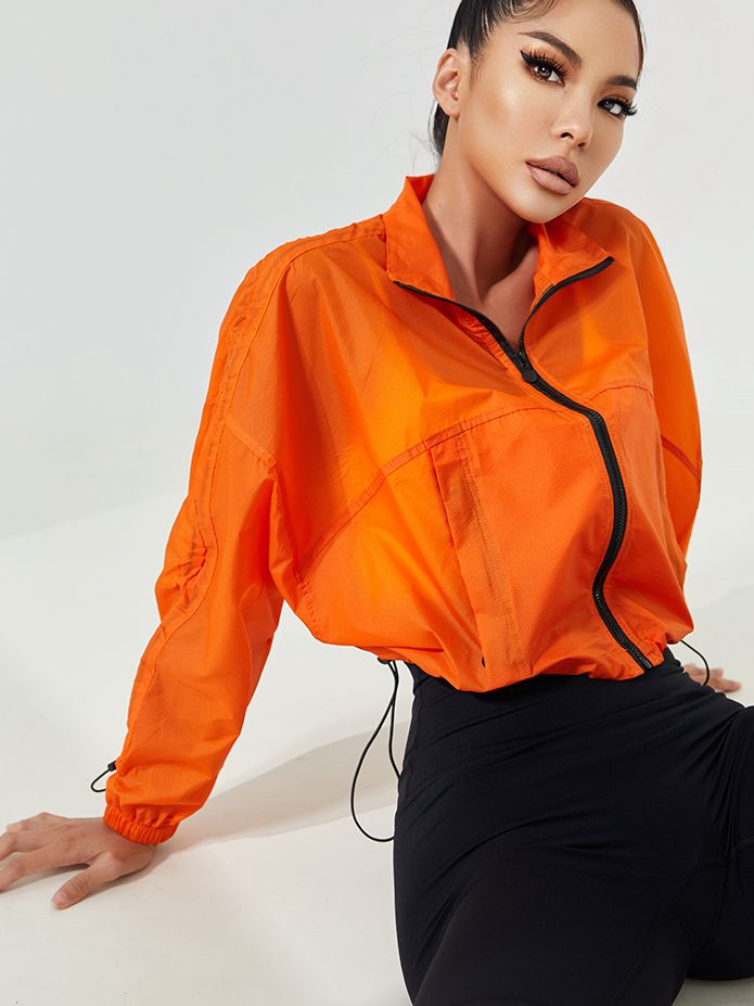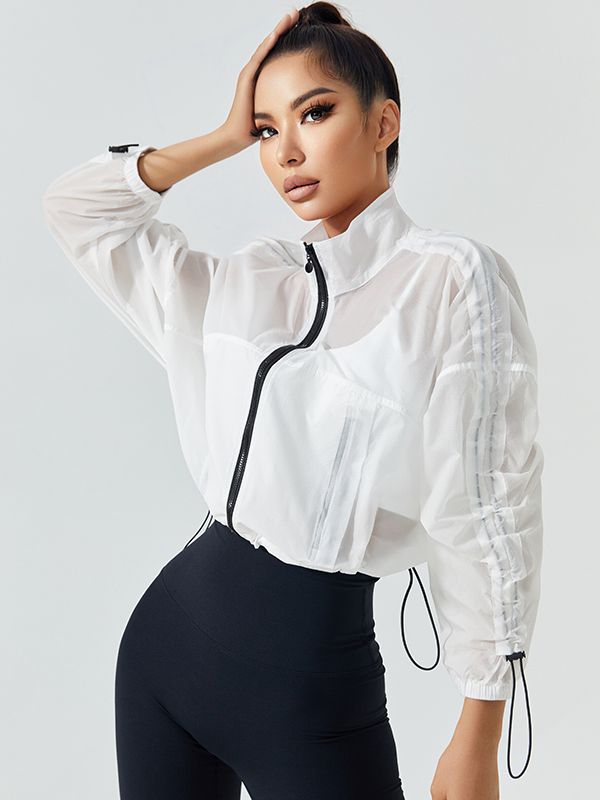 Kadın Anti-UV Fermuarlı Cepli Hızlı Kuruyan Kısa Ceket, Çekme Kordonlu