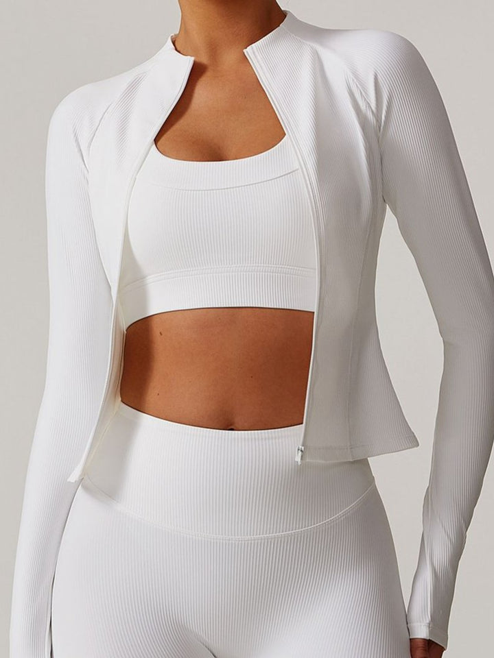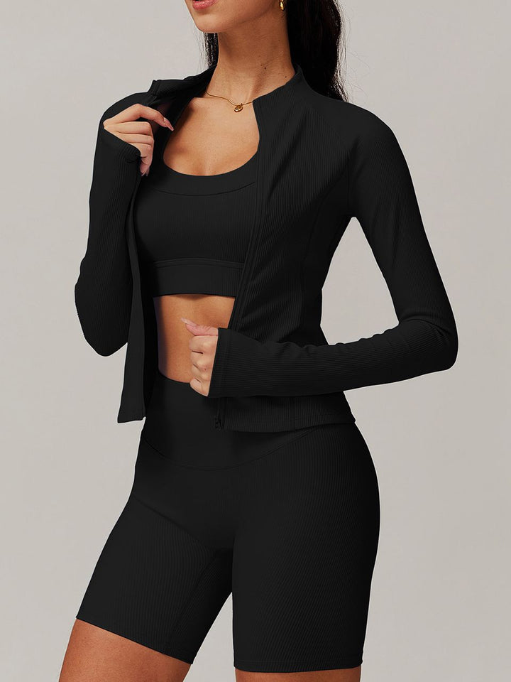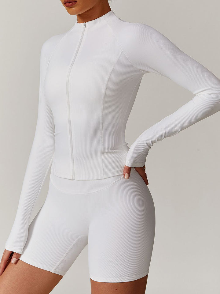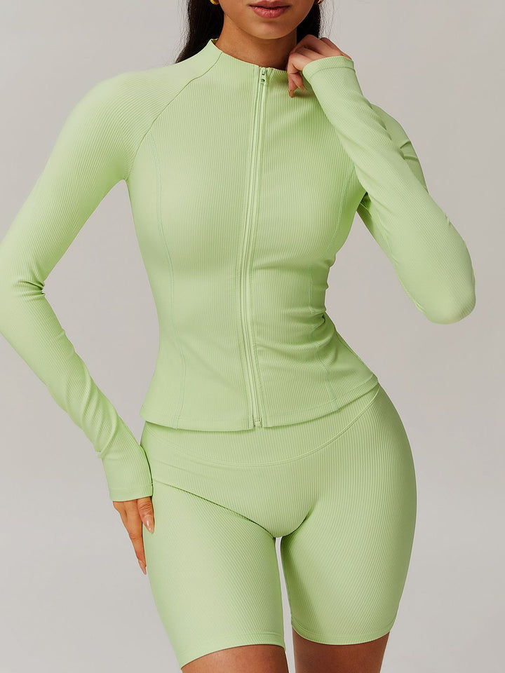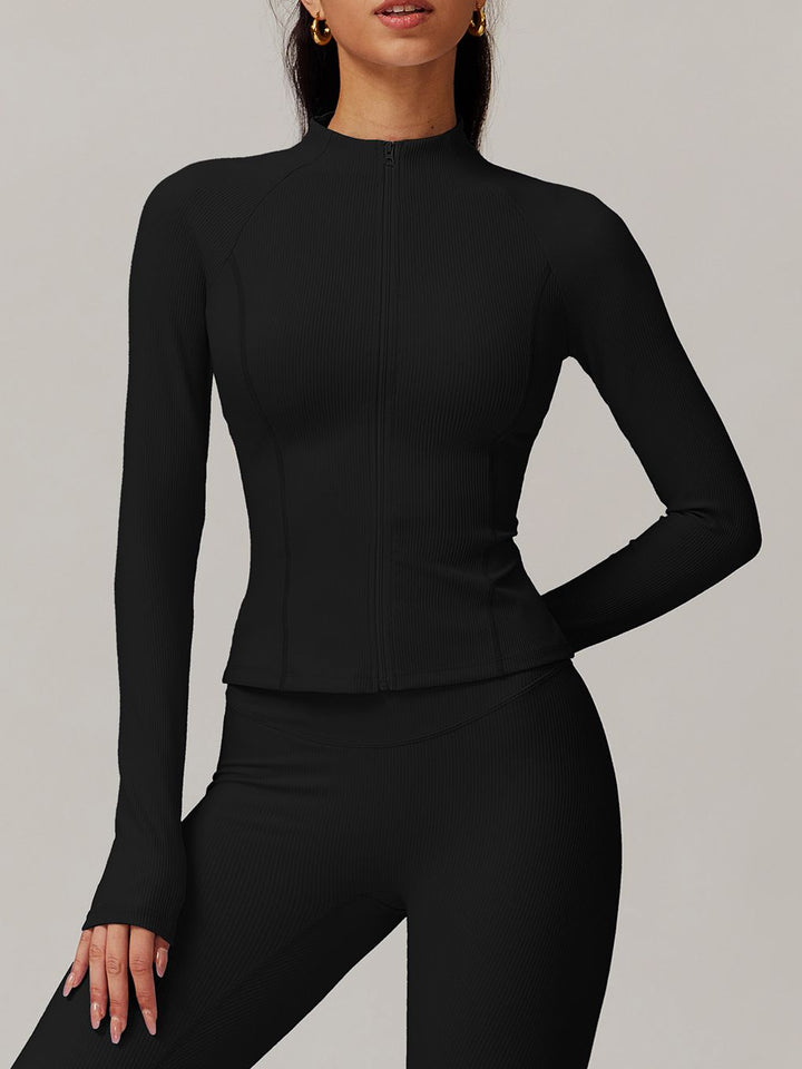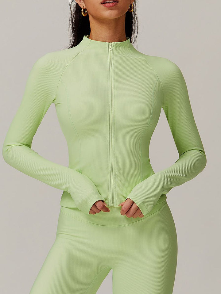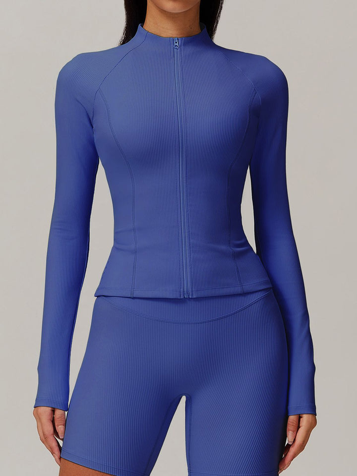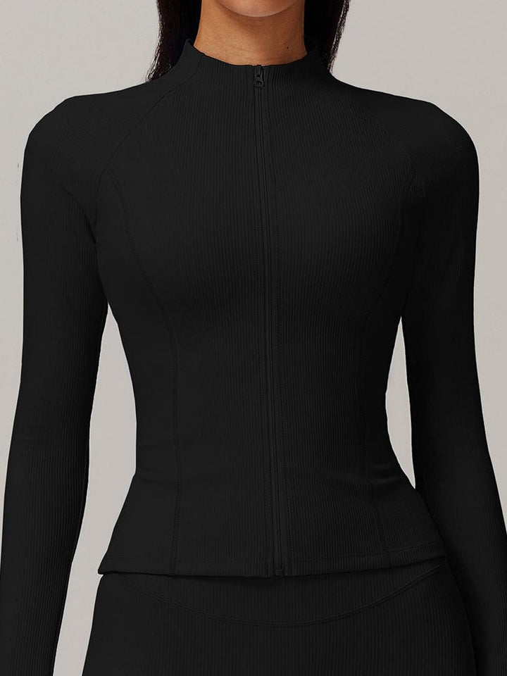 Kadın Fermuarlı Duruş Yaka Ribanalı Ceket
