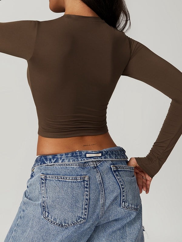 Kadın Hızla Kuruyan Yuvarlak Yaka Uzun Kollu Tişört