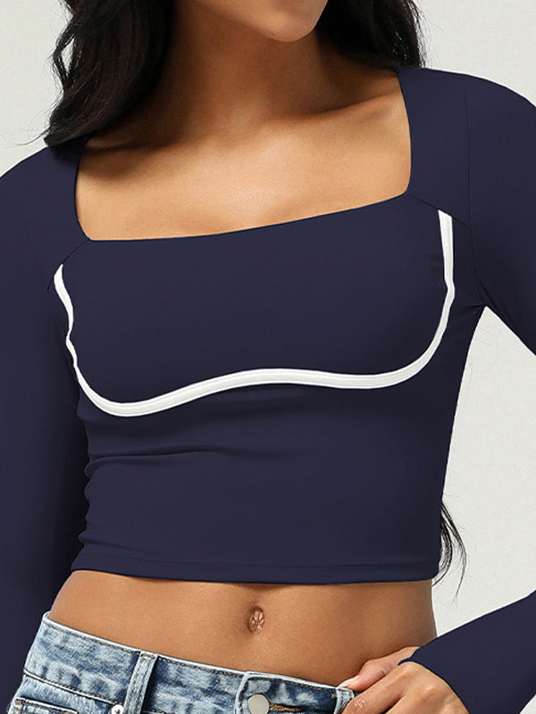 Kadın Kare Yaka, Göğüs Pedli, Parmak Delikli Uzun Kollu Bluz
