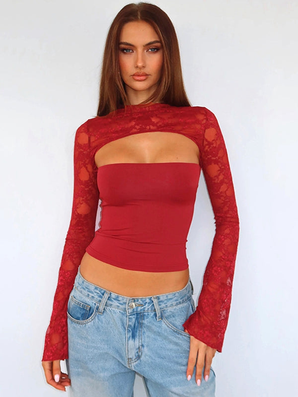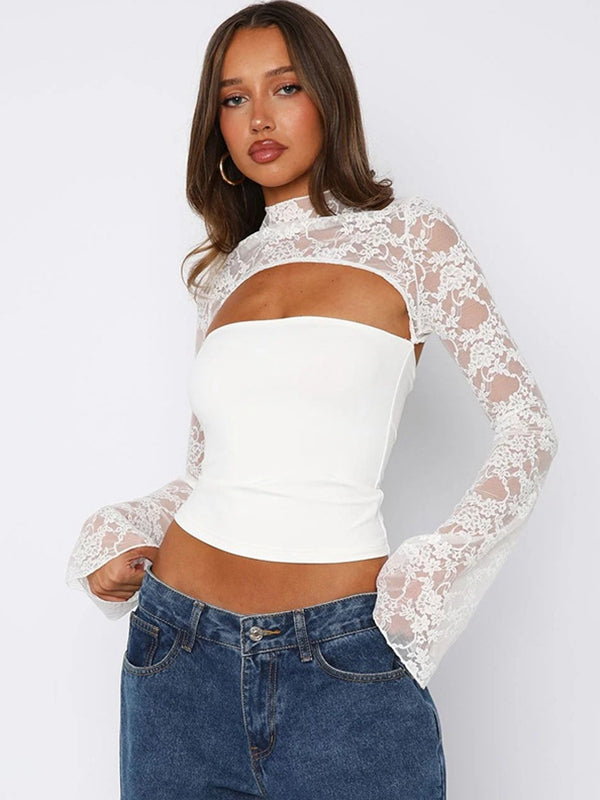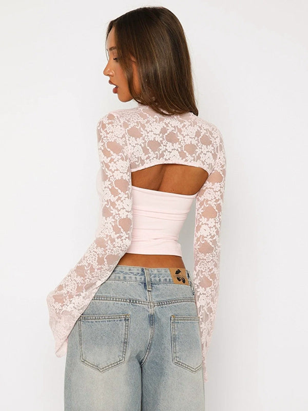 Kadın Şeffaf File Uzun Kollu Düz Renk Bluz
