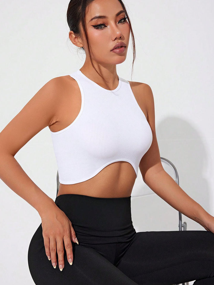 Kadın Sexy Yuvarlak Yaka Ribanalı Hızlı Kuruyan Asimetrik Atlet