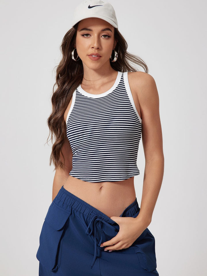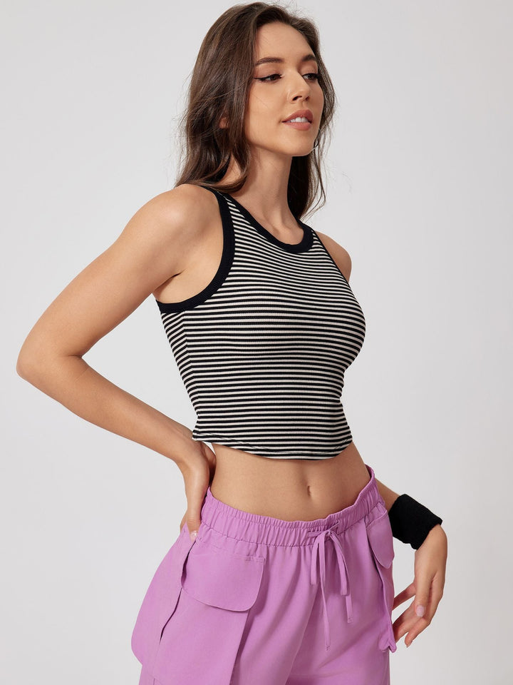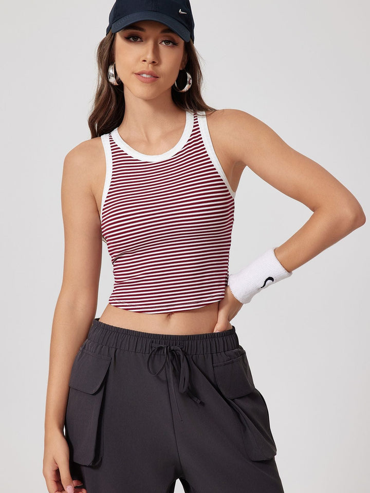 Kadın U Yaka Hızlı Kuruyan Çizgili Atlet - Kontrast Renk